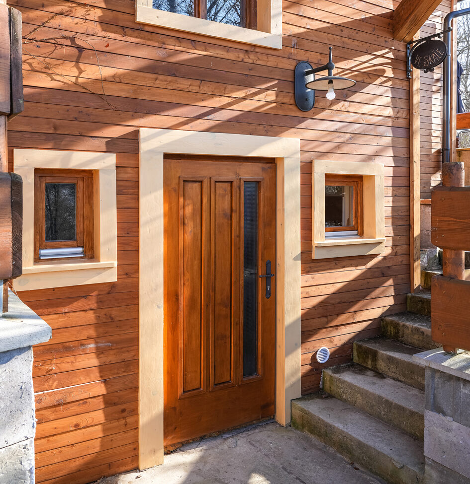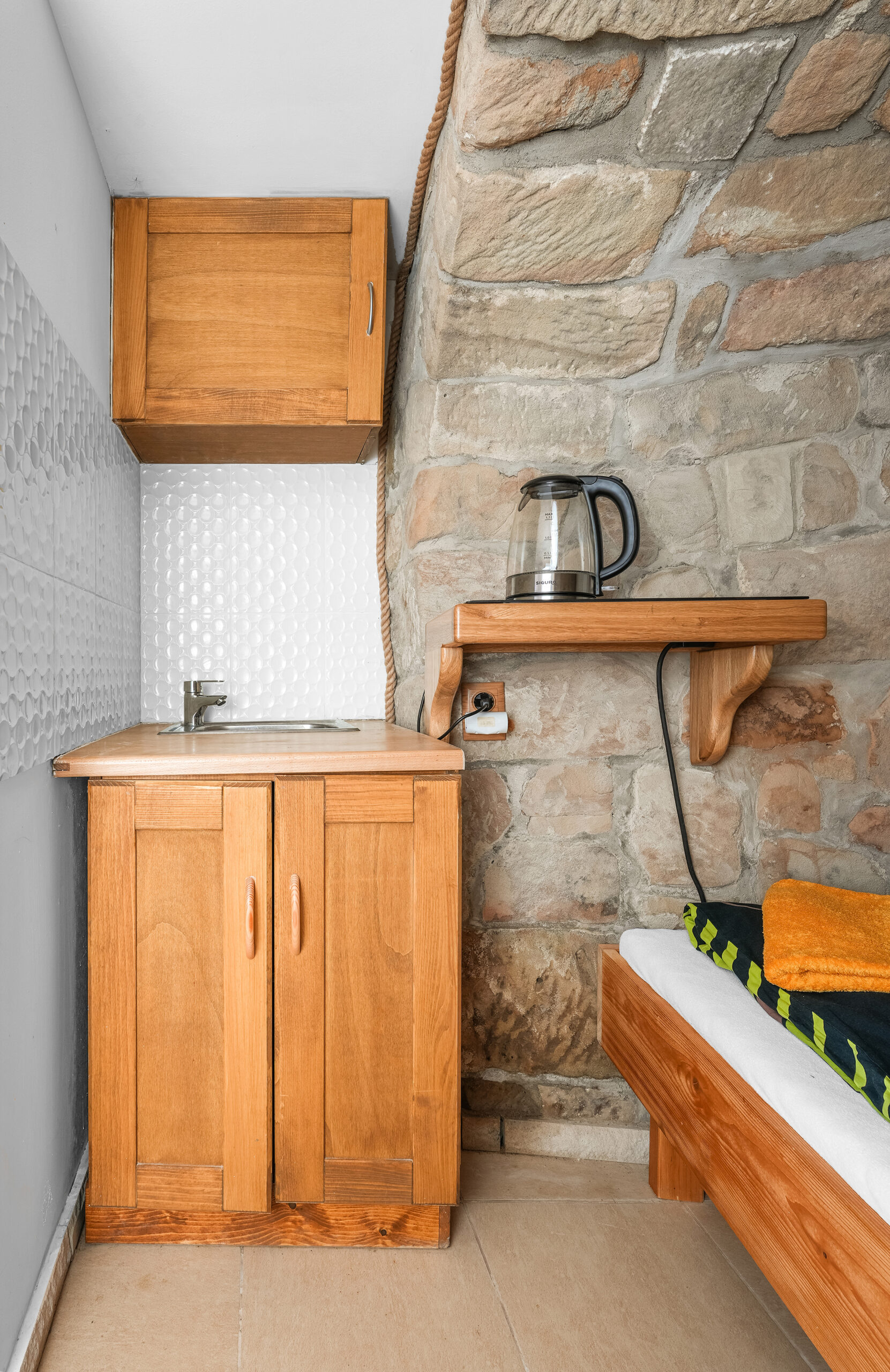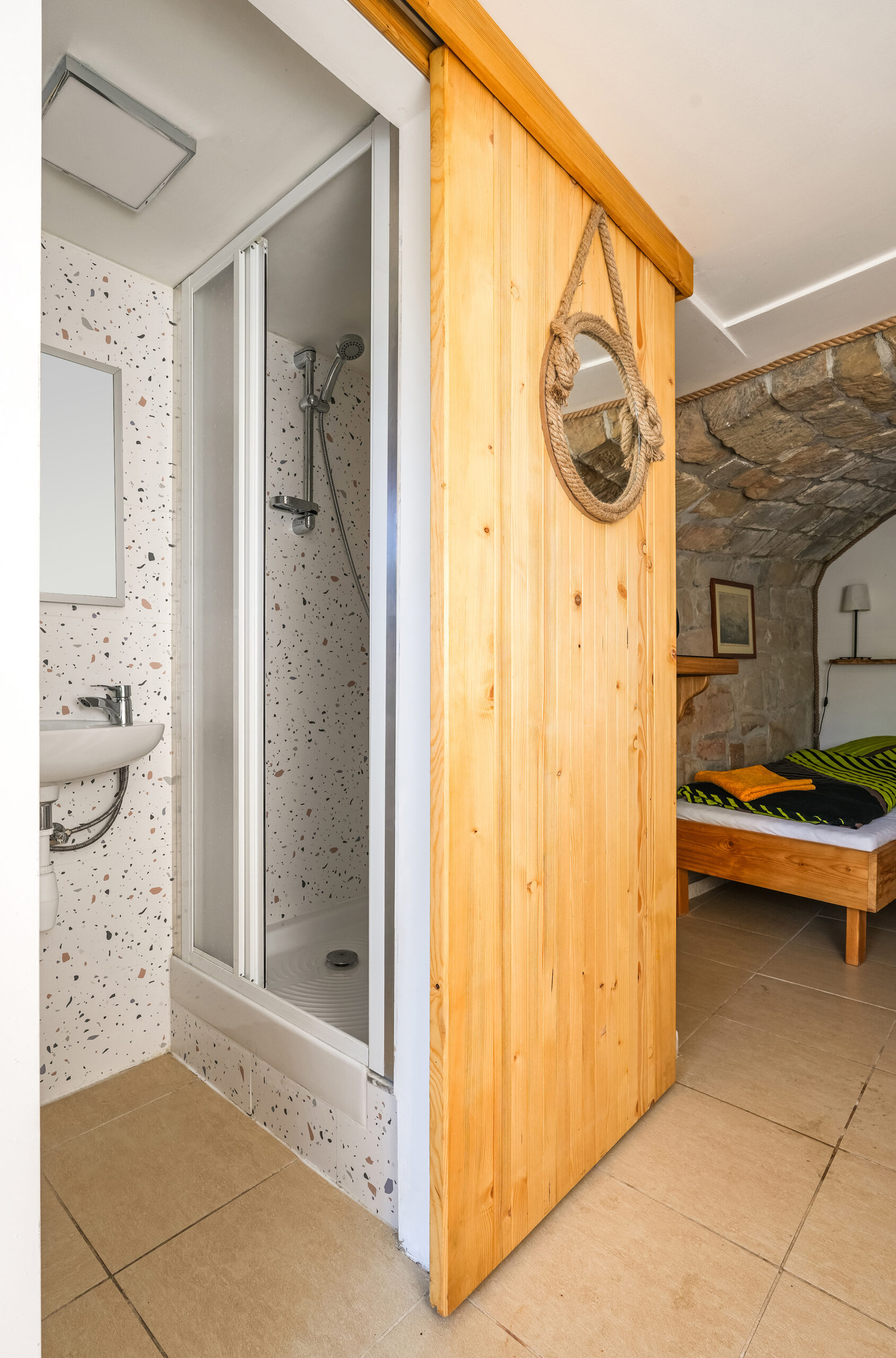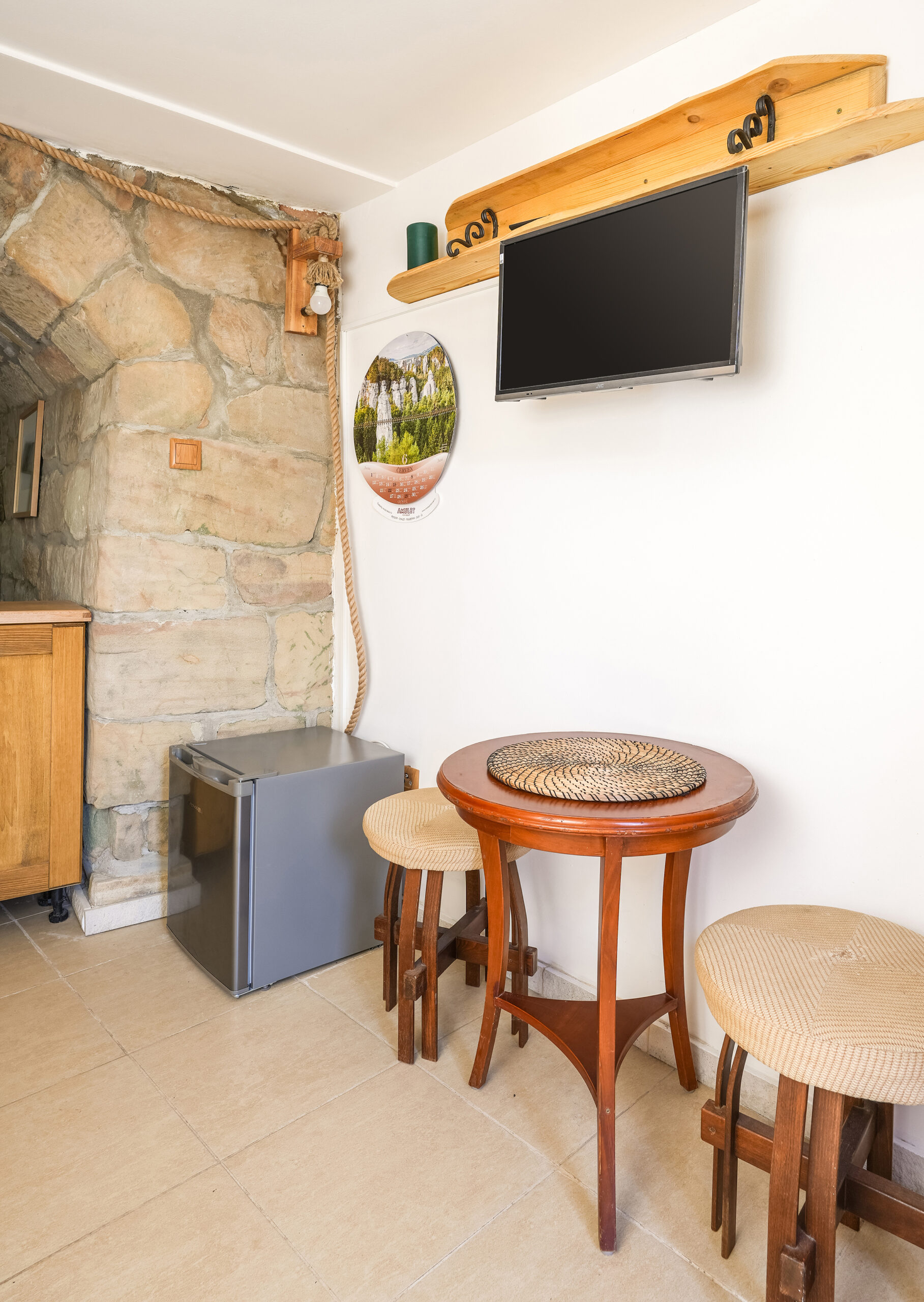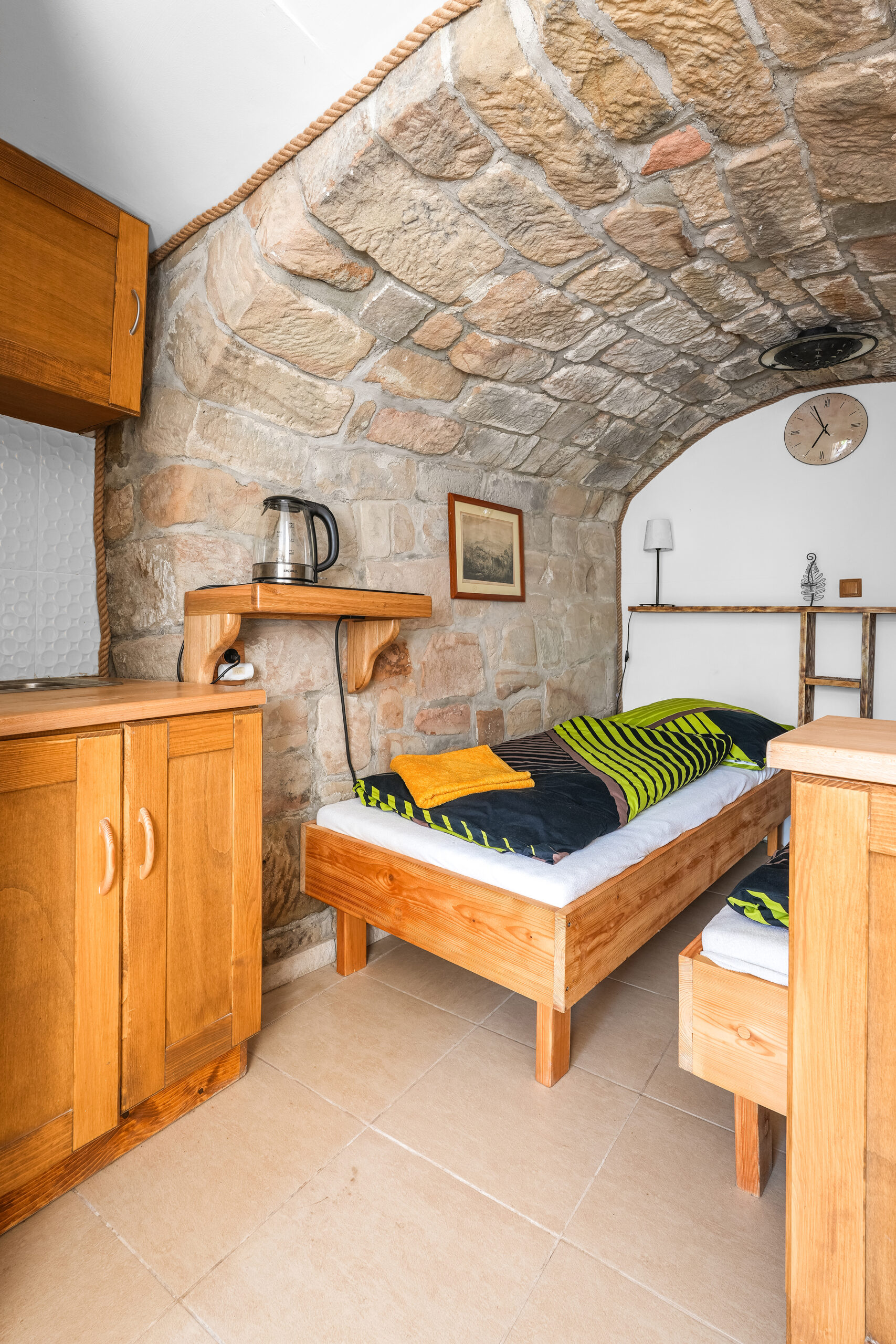 Apartmán Ve skále , jak název napovídá, je částečně zabudován ve skále. Obložení z pískovcových kamenů zajišťuje příjemnou teplotu v horkých dnech.