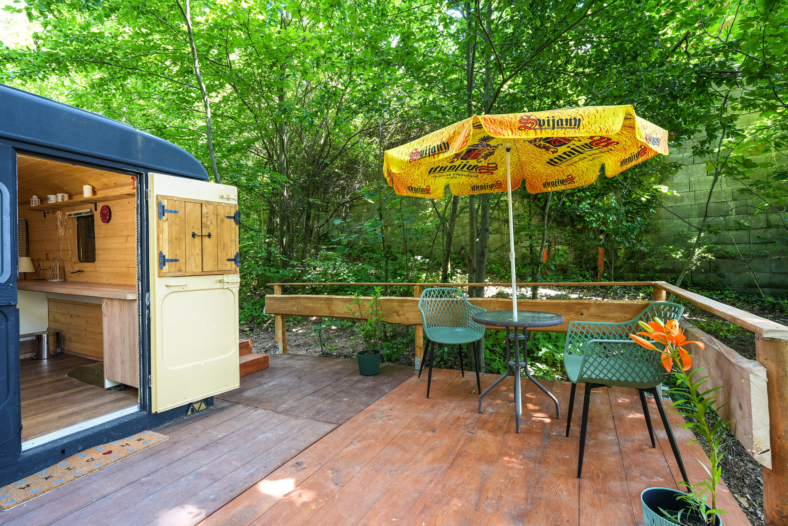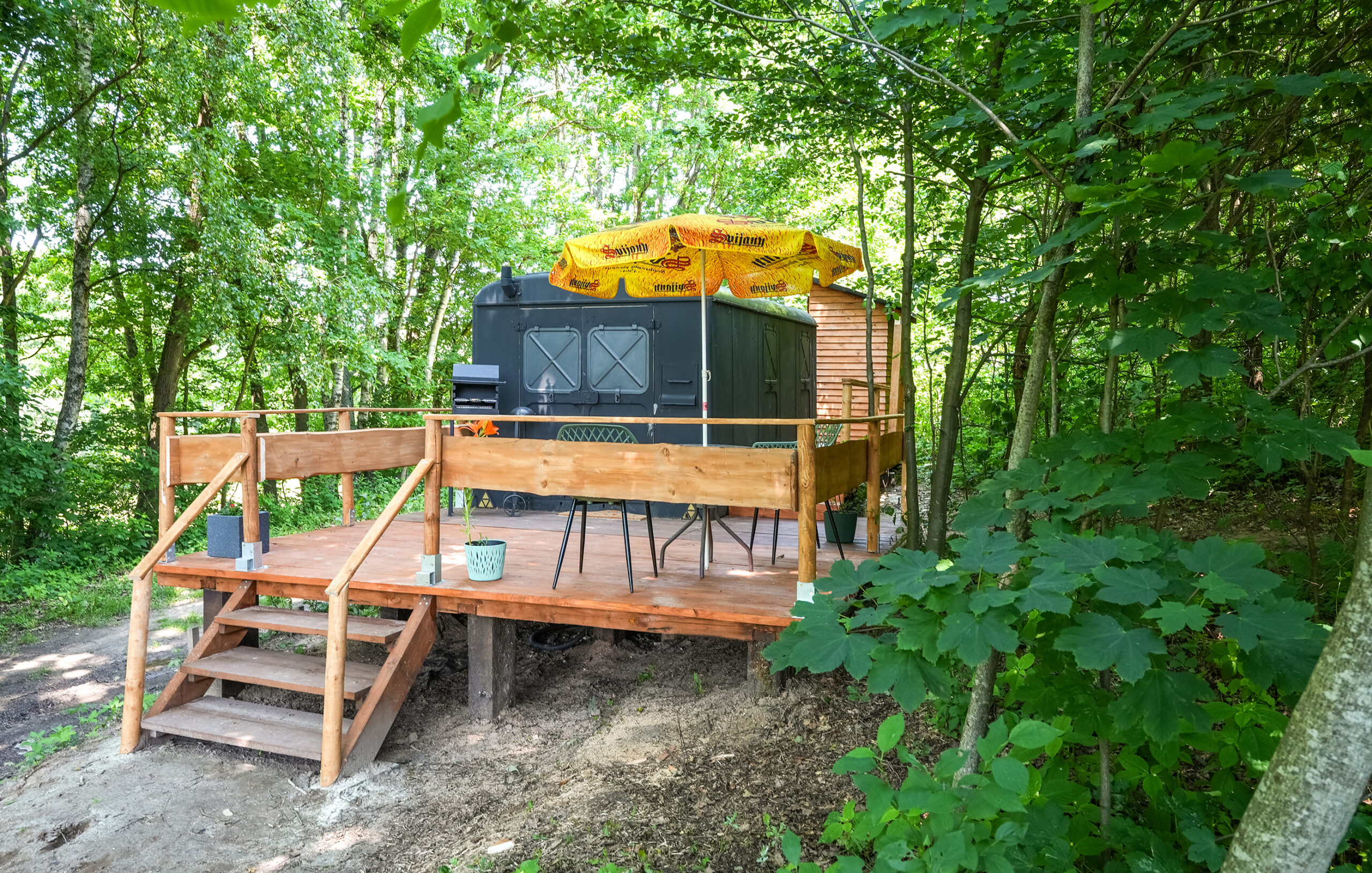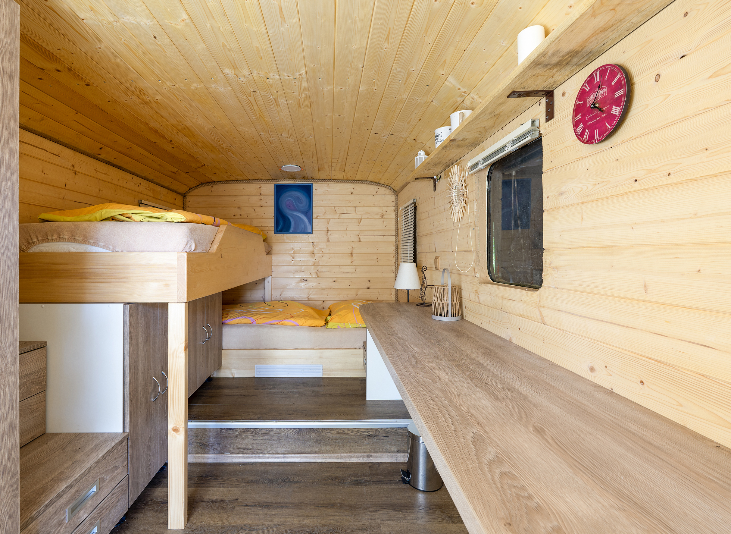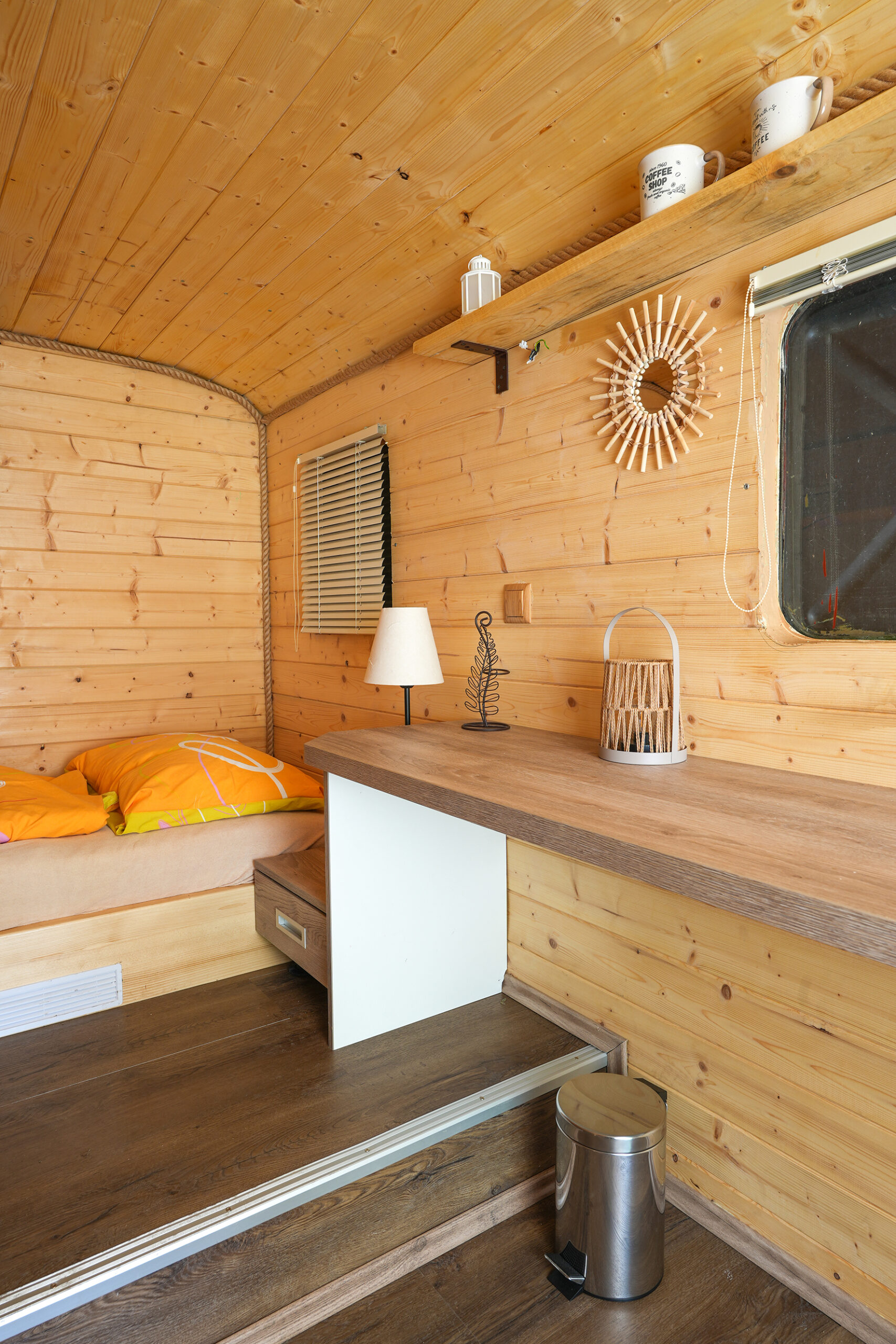 Die Schwarze Maringotka ist unsere kleinste Unterkunft. Sie ist einfach, aber funktional eingerichtet und bietet 2 getrennte Betten.