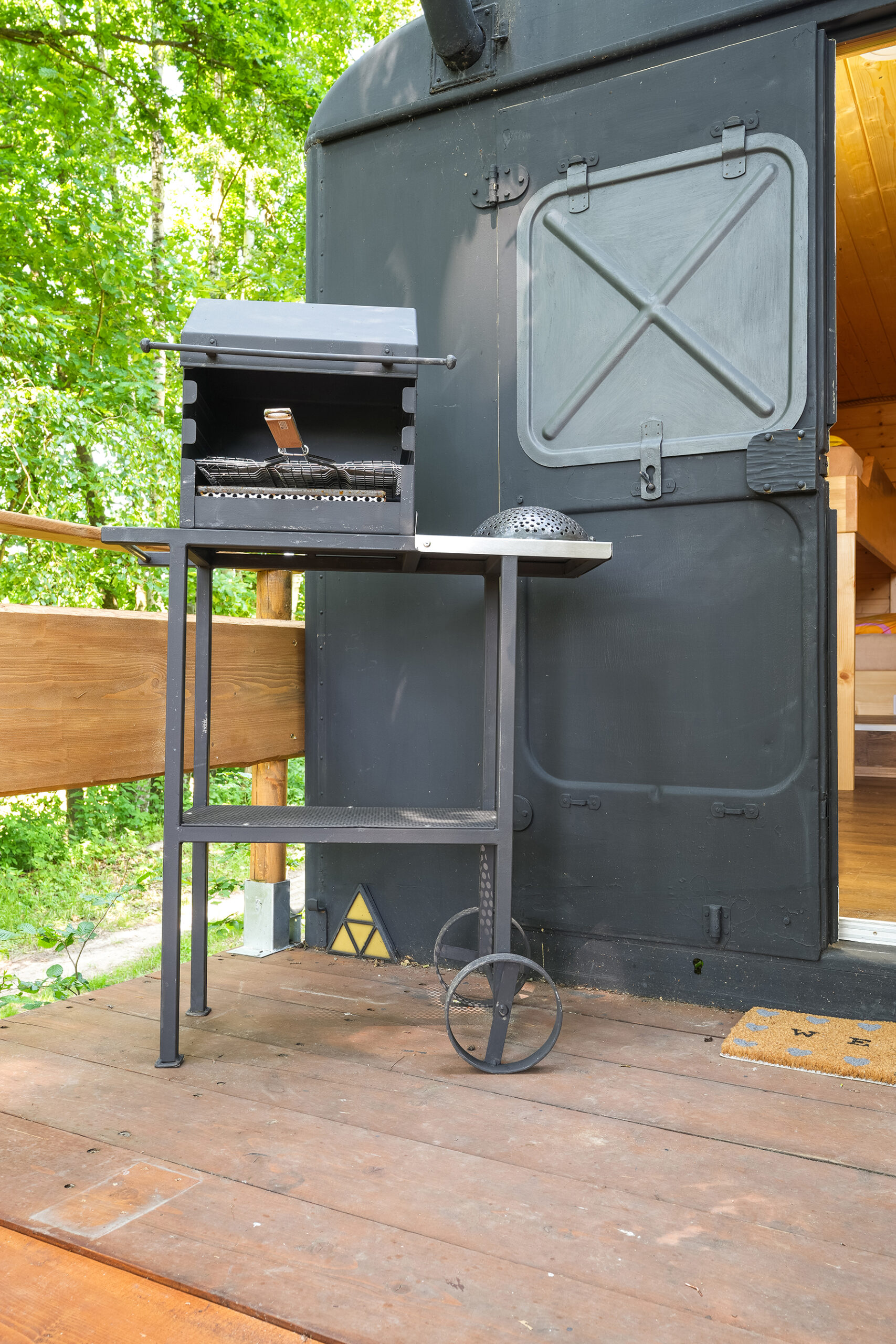 Zur Verfügung stehen ein kleiner Kühlschrank und eine Elektrische Kochplatte. In der kälteren Jahreszeit können Sie mit einer Elektroheizung heizen. Zur Unterkunft gehört eine Terrasse mit Sitzgelegenheiten und einem Grill sowie ein kleines Bad mit Komposttoilette, das sich neben der Maringotka befindet. Es gibt kein Waschbecken mit fließendem Wasser, aber Sie können das Waschbecken im Badezimmer nutzen.